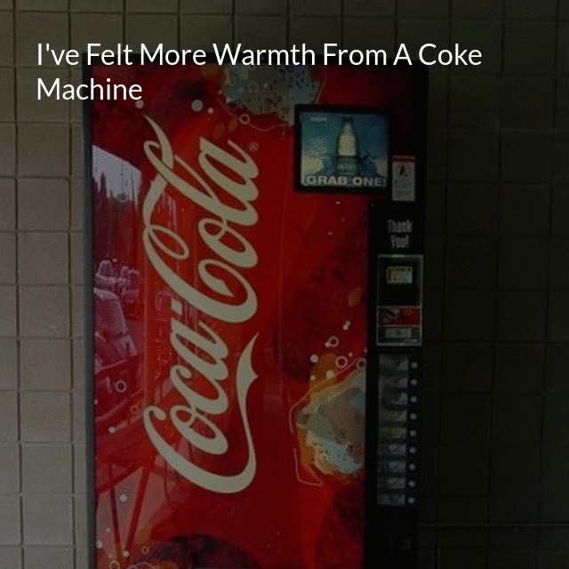 "title": "I've Felt More Warmth From A Coke Machine",