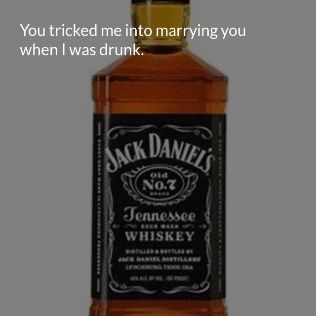 "description": "You tricked me into marrying you when I was drunk. When I learned what happened, my ship was sunk.\n",