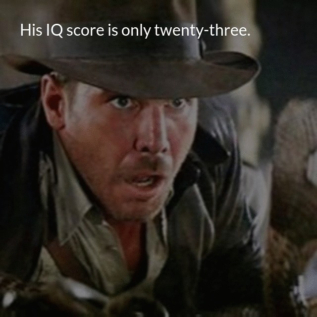 "description": "My cousin is as dumb as he can be. His IQ score is only twenty-three.\n",