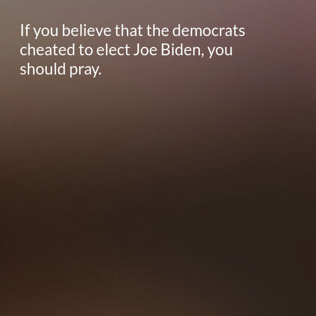 "description": "If you believe that the democrats cheated to elect Joe Biden, you should pray. If his victory was unfair, God is the only one who can help us now.\n",