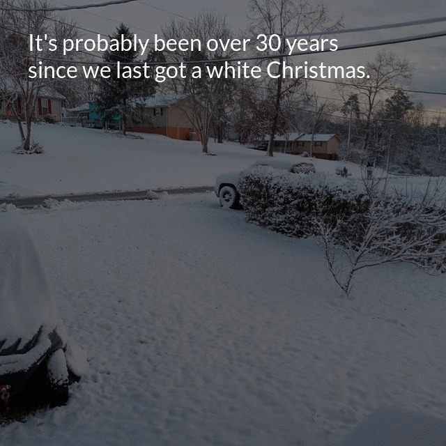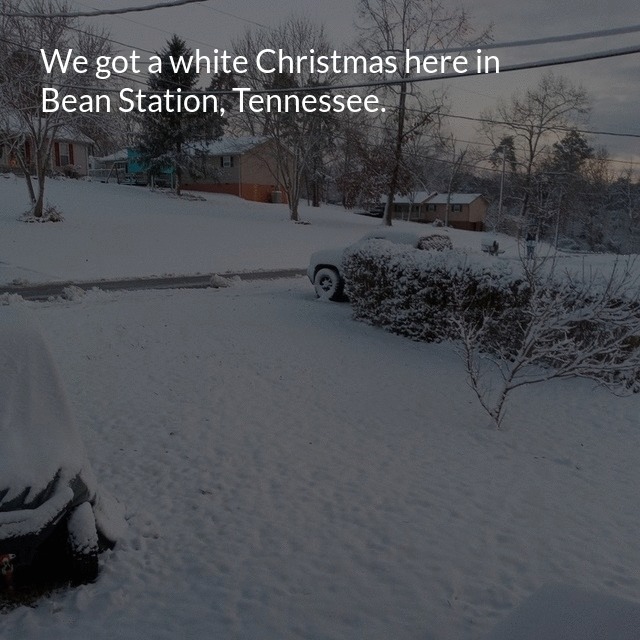 "description": "We got a white Christmas here in Bean Station, Tennessee. It's probably been over 30 years since we last got a white Christmas.\n",