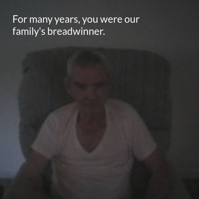 "description": "For many years, you were our family's breadwinner. Your money paid for our breakfasts, lunches and dinners.\n",