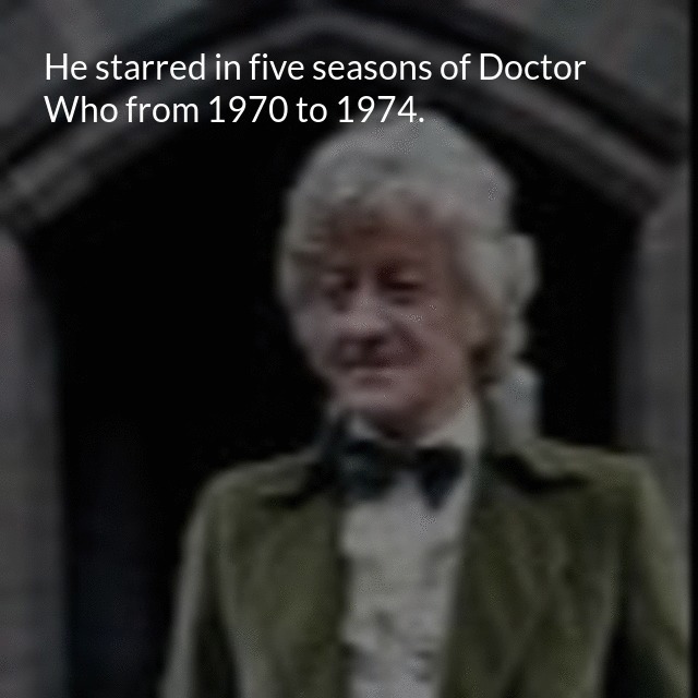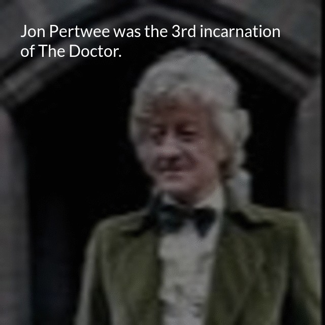 "description": "Jon Pertwee was the 3rd incarnation of The Doctor. He starred in five seasons of Doctor Who from 1970 to 1974.\n",