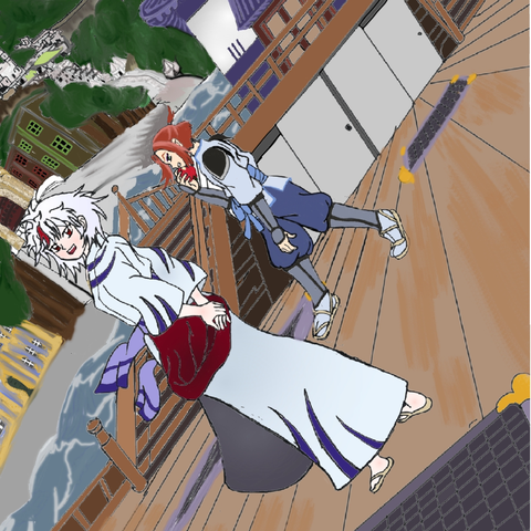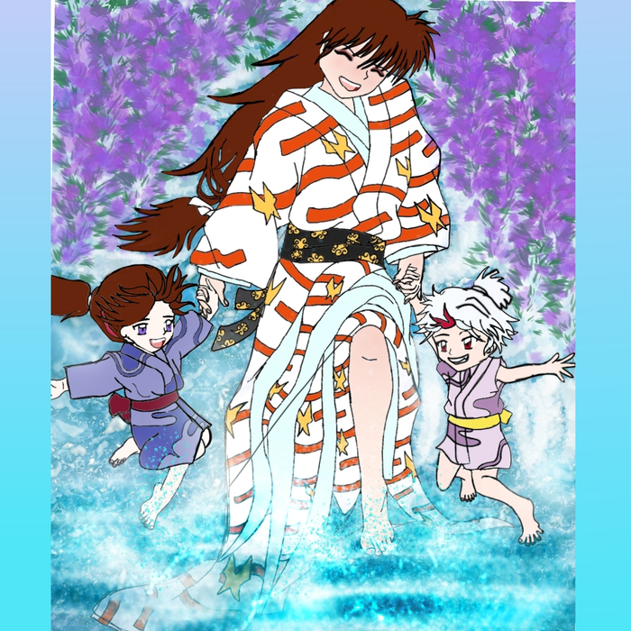 "description": "Sesshomaru and Rin at the Summer Festival with lights and lanterns.",
