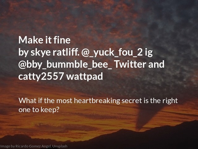 "title": "Make it fine \nby skye ratliff. @_yuck_fou_2 ig @bby_bummble_bee_ Twitter and catty2557 wattpad",