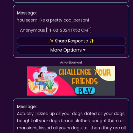 "about": "MY NEOBOOK USERNAME IS @weirdboi SO DM ME THERE IF YOU STILL WANT TO TALK! or you can click on the link in the comments of my 2nd to most recent post to talk on web.rock.so\n\nMy username (@weirdboiface) sounds so stupid but I made it forever ago and it would just feel wrong to change it...\n\n I'm 14 and in 8th grade. I'm an extrovert. I have an awesome dog. On my profile you can find comedy relief.\n\nI've probably read like 20000k words on commaful but I read so fast so it says i've read barely any...\n\nI love talking to people so DM me!\n\nNo i'm not a furry I just really like pets.",