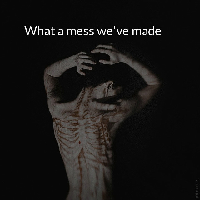 "description": "What a mess we've made\n",