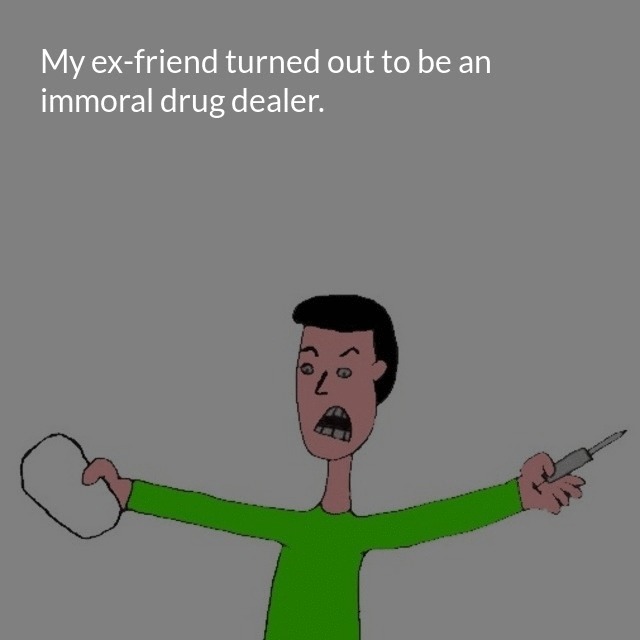 "description": "My ex-friend turned out to be an immoral drug dealer. His drugs ended some lives and that made him a killer.\n",